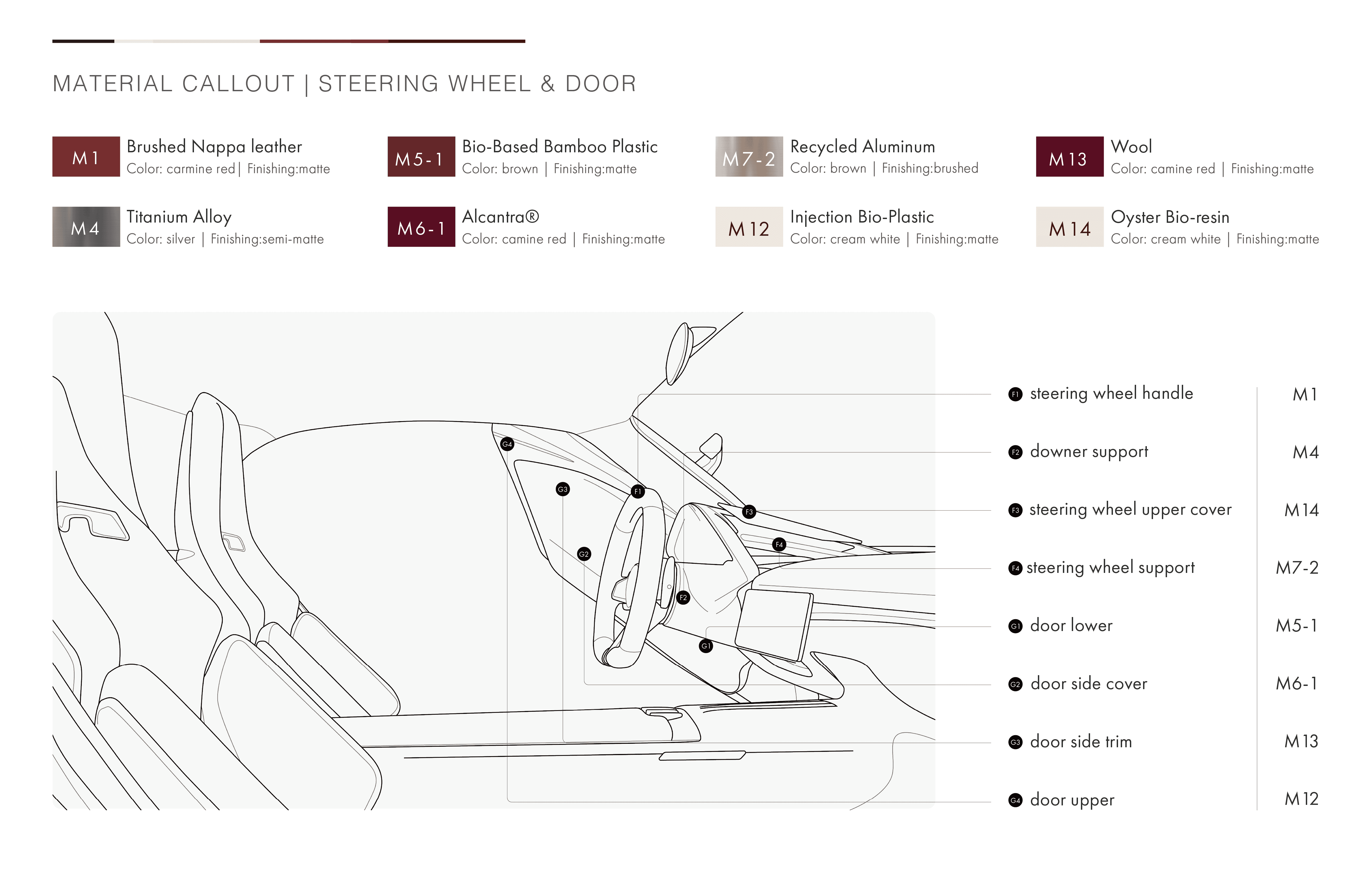 -Materials: Alcantara, leather, wood trims.